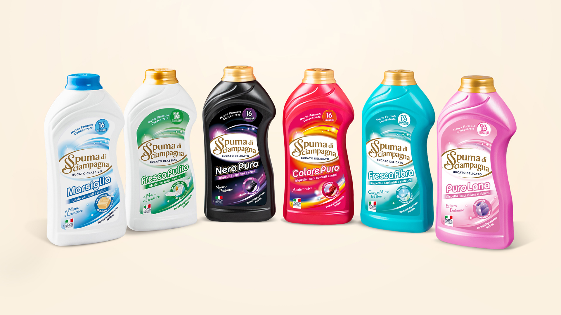 Grazie a una gerarchia informativa più chiara e razionalizzata, i contenuti risultano più leggibili e immediati, migliorando l’impatto a scaffale e la comprensione dei benefici di prodotto. Il risultato è un’identità visiva solida, contemporanea e competitiva, capace di accompagnare Spuma di Sciampagna nel suo percorso di evoluzione.